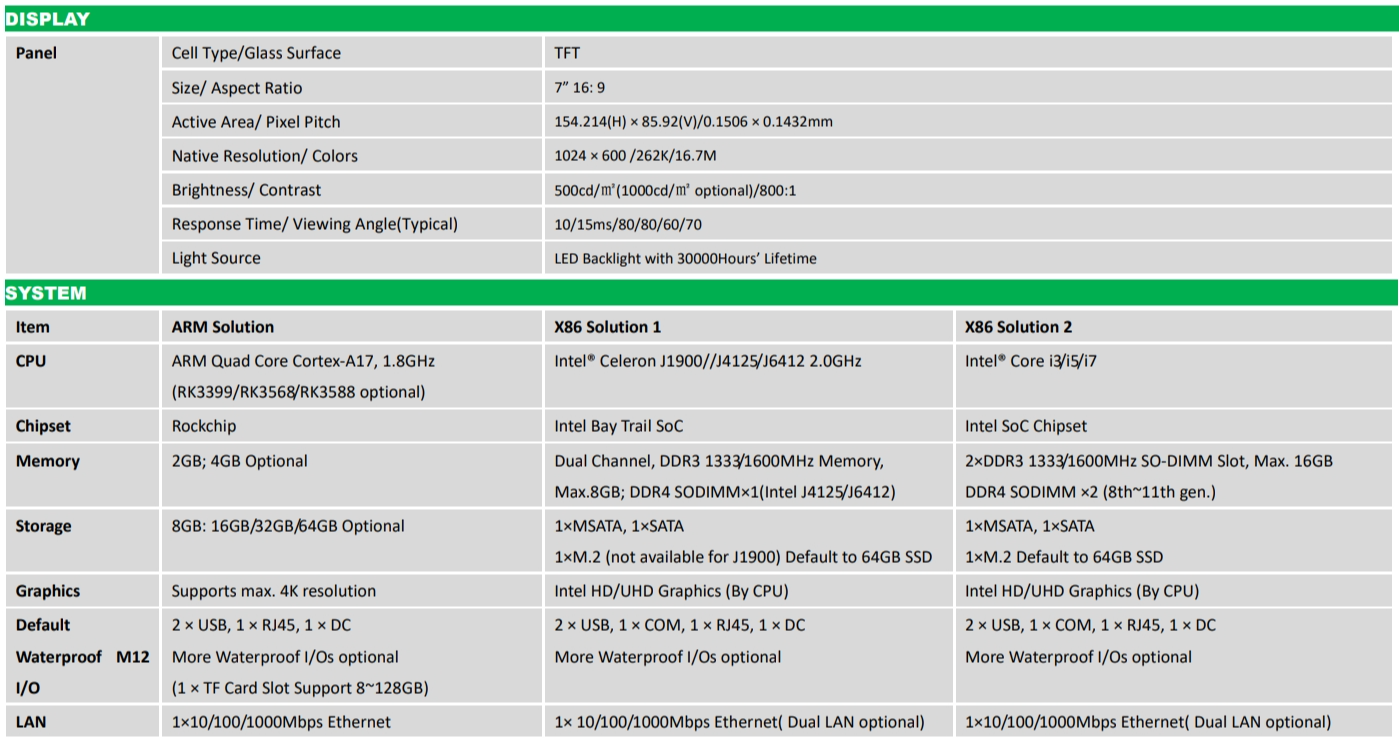 •Rugged stainless steel enclosure design with high EMC, fanless design and flat surface with easy-to-clean